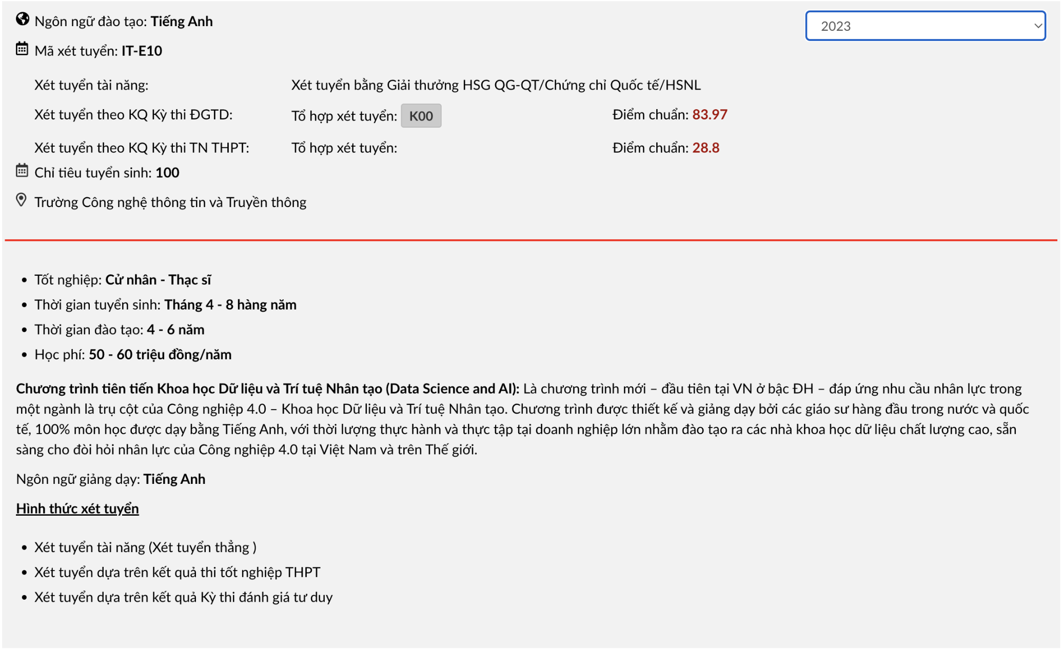 Taking a quick google search of some AI courses at US University, Vietnam, we both can see that the "hot" of the course. In Vietnam, the 1st batch of AI Engineer who graduated from an official AI 05-year program will be ready in resources market by Summer 2024. This really brought success to Hanoi University of Science and Technology (HUST) for the first batch and the follow-ones.