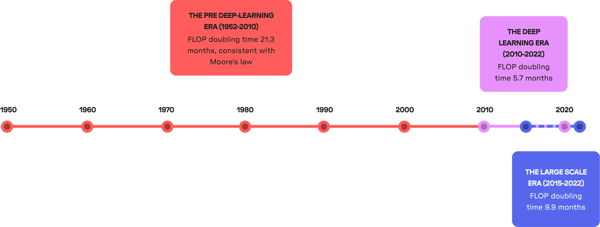 FLOPS is a standard measure of computing power – "Floating Point Operations Per Second". So, a 1 FLOP machine will perform one "operation" in a second. Referring to the above FLOP scale history, we can observe a significant gap between the current demand for computing power and the available capacity. Addressing this gap, leveraging blockchain technology to increase shared computing power for processing and running AI models could provide tremendous support. This would be a game-changing solution for the current market.