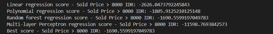 - If the bike is worth less than 8000 IDR with its age from 2 to 132 months, it should be sold for 6616 +/- (527, 528) IDR with 95% confidence level.