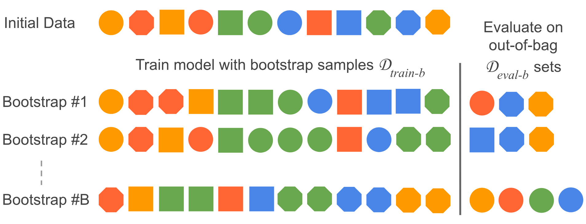 - Order the statistics, then select values at the chosen percentile for the confidence interval.