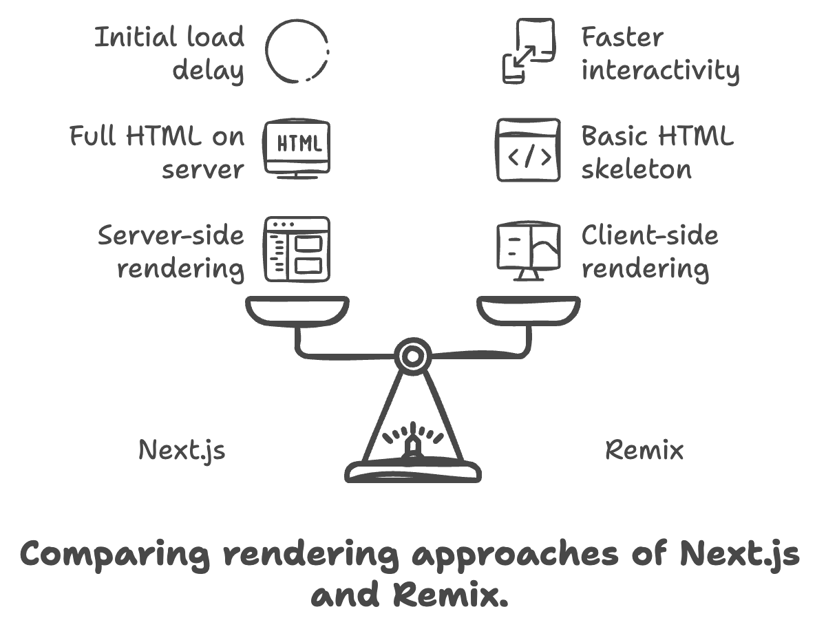 Instead of rendering full HTML on the server and sending it to the client (as Next.js often promotes), OpenAI is relying on client-side rendering for its interactivity. This shift makes Remix a more attractive choice, as it’s designed to excel in this exact environment.